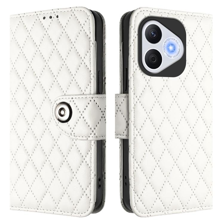 Funda de Cuero con Tapa y Textura Rombal para Honor 400 Lite con Cordón (Blanco)
