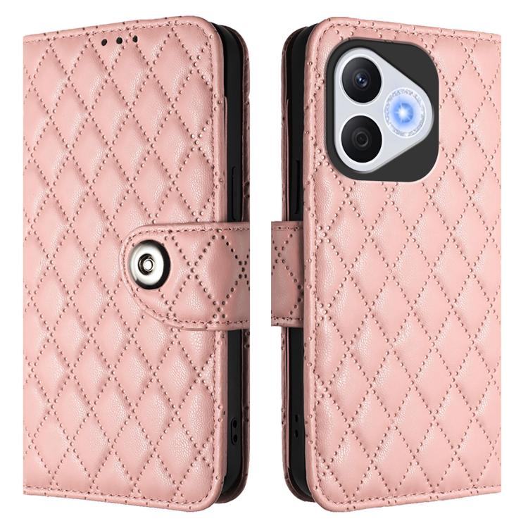 Funda de Cuero con Tapa y Textura Rombal para Honor 400 Lite con Cordón (Rosa Coral)