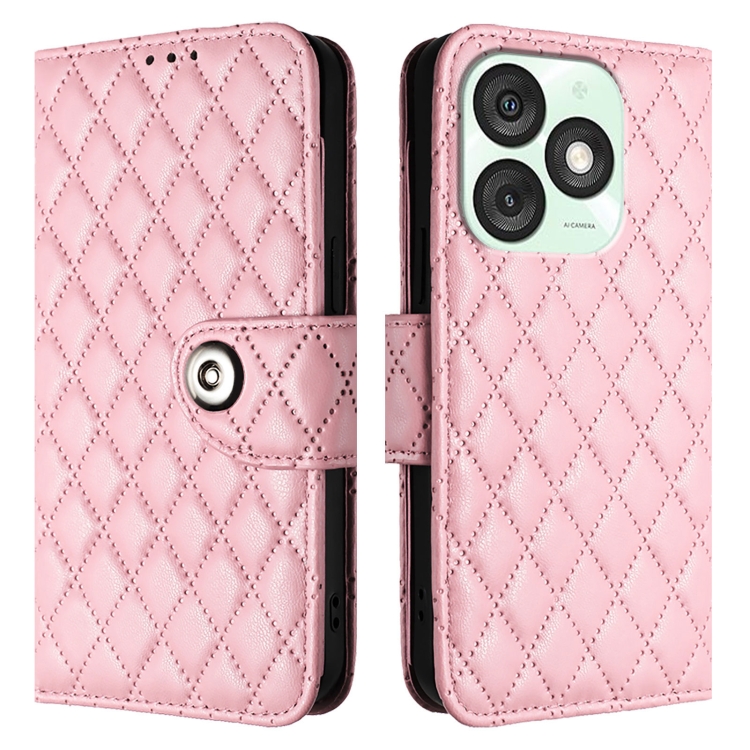 Funda de Cuero con Tapa y Textura Rombal para Teléfono Itel A50 con Cordón (Rosa)
