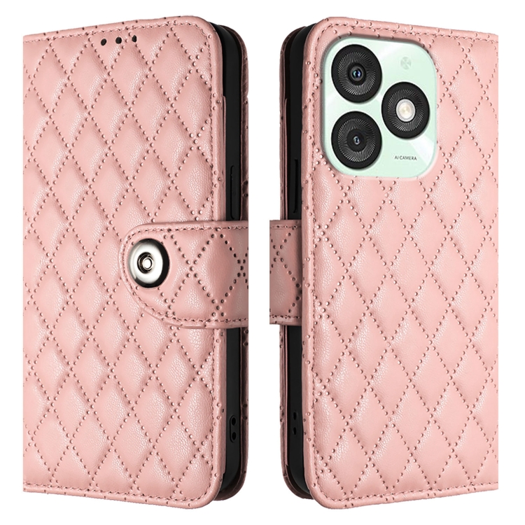 Funda de Cuero con Tapa y Textura Rombal para Teléfono Itel A50 con Cordón (Rosa Coral)