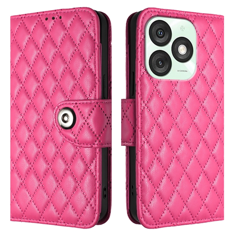 Funda de Cuero con Tapa y Textura Rombal para Teléfono Itel A50 con Cordón (Rosa y Rojo)