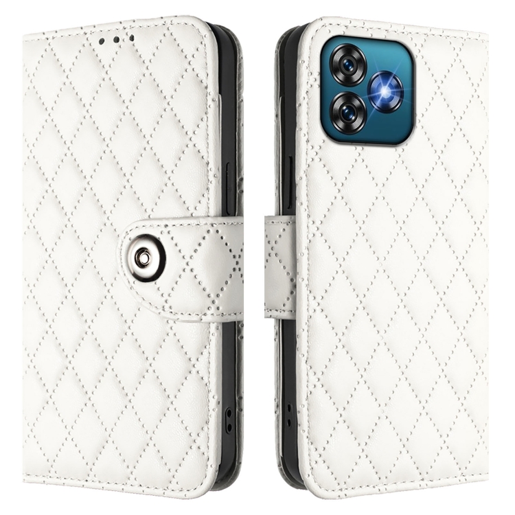 Funda de Cuero con Tapa y Textura Rombal para Oukitel C53 con Cordón (Blanco)