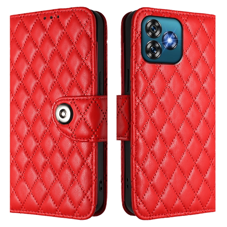 Funda de Cuero con Tapa y Textura Rombal para Oukitel C53 con Cordón (Rojo)