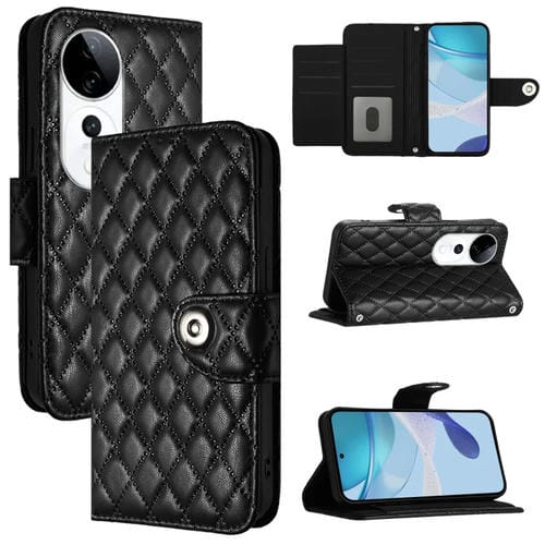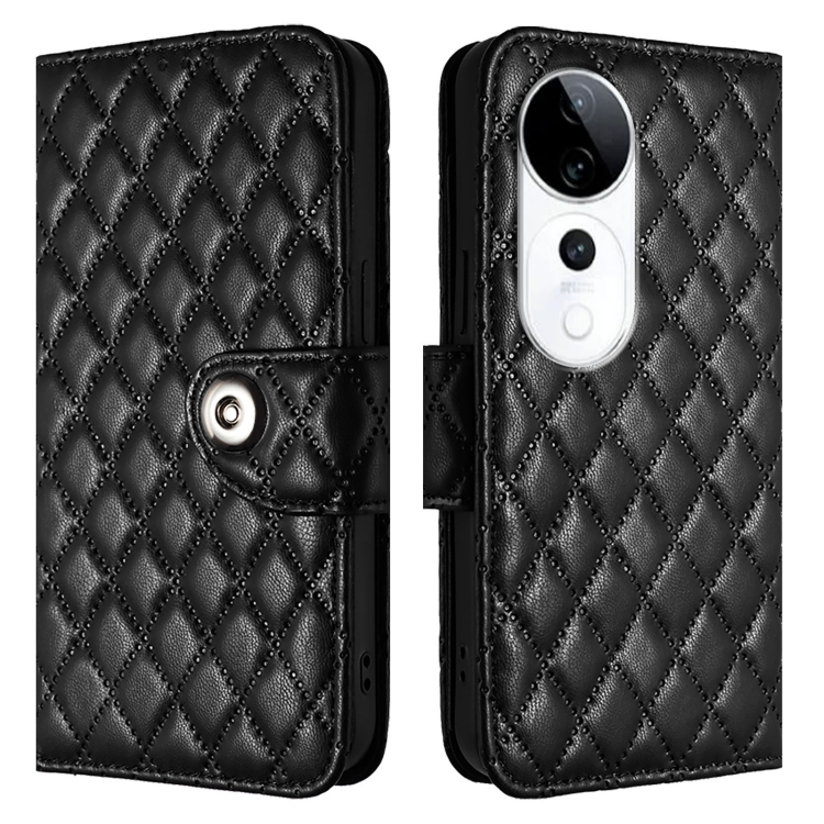 Funda de Cuero con Tapa y Textura Rombal para Vivo S19 Pro con Cordón (Negro)
