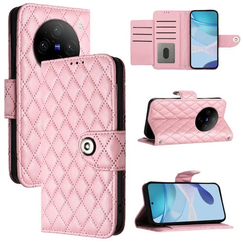 Funda de Cuero con Tapa y Textura Rombal para Vivo X100 con Cordón (Rosa)
