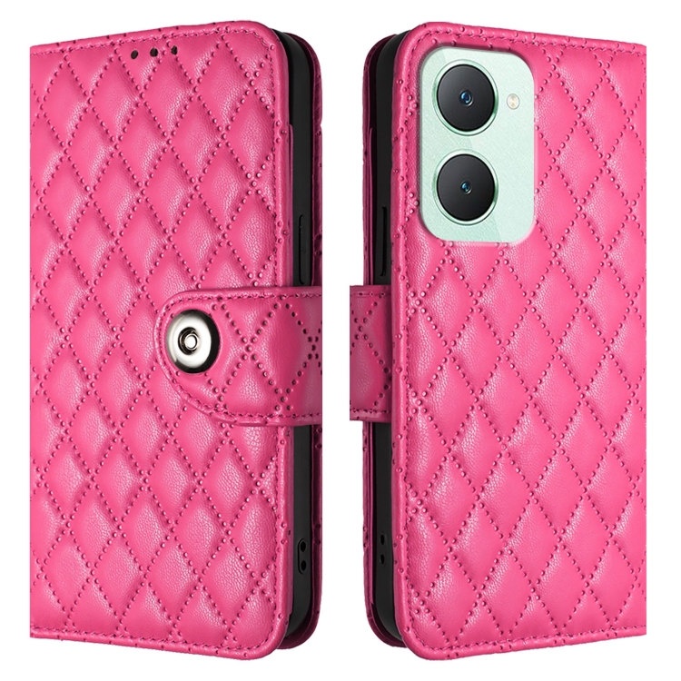 Funda de Cuero con Tapa y Textura Rombal para Vivo Y03/Y18 con Cordón (Rosa y Rojo)