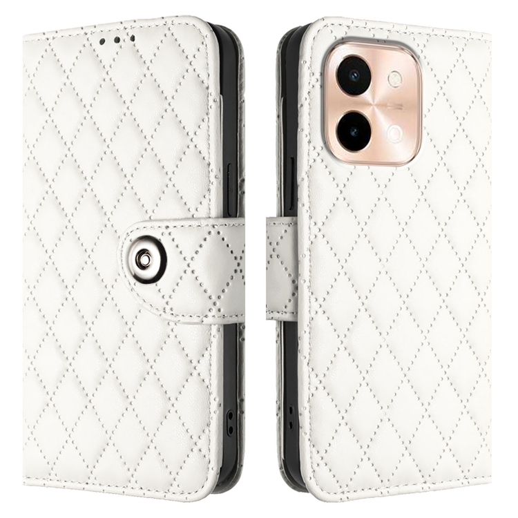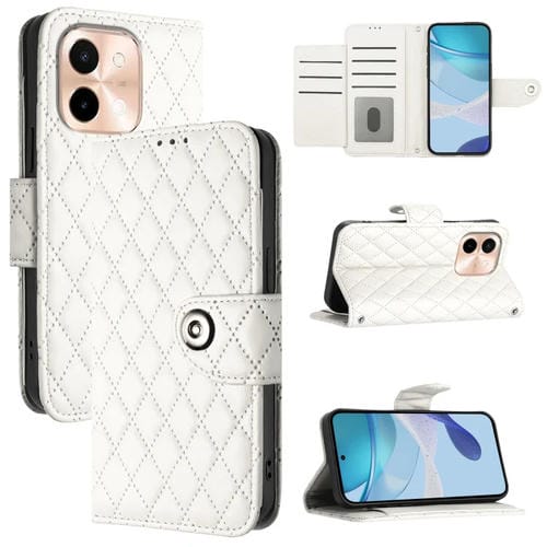 Funda de Cuero con Tapa y Textura Rombal para Vivo Y28 4G con Cordón (Blanco)