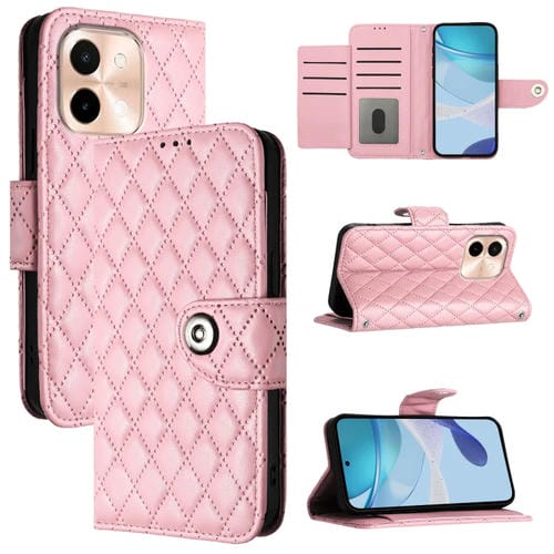 Funda de Cuero con Tapa y Textura Rombal para Vivo Y28 4G con Cordón (Rosa)