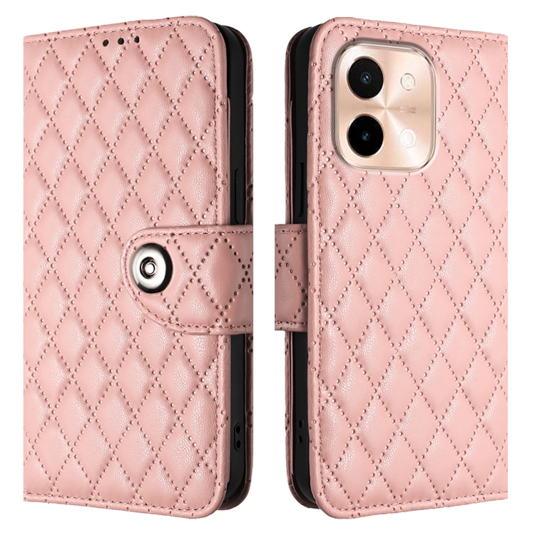 Funda de Cuero con Tapa y Textura Rombal para Vivo Y28 4G con Cordón (Rosa Coral)