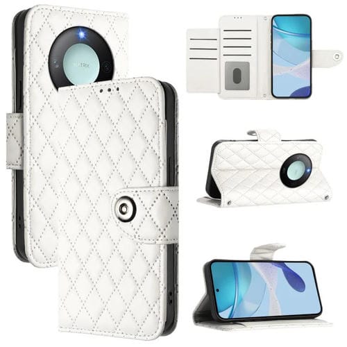 Funda de Cuero con Tapa y Cordón para Honor X9C Smart 5G con Textura Rómbica (Blanco)