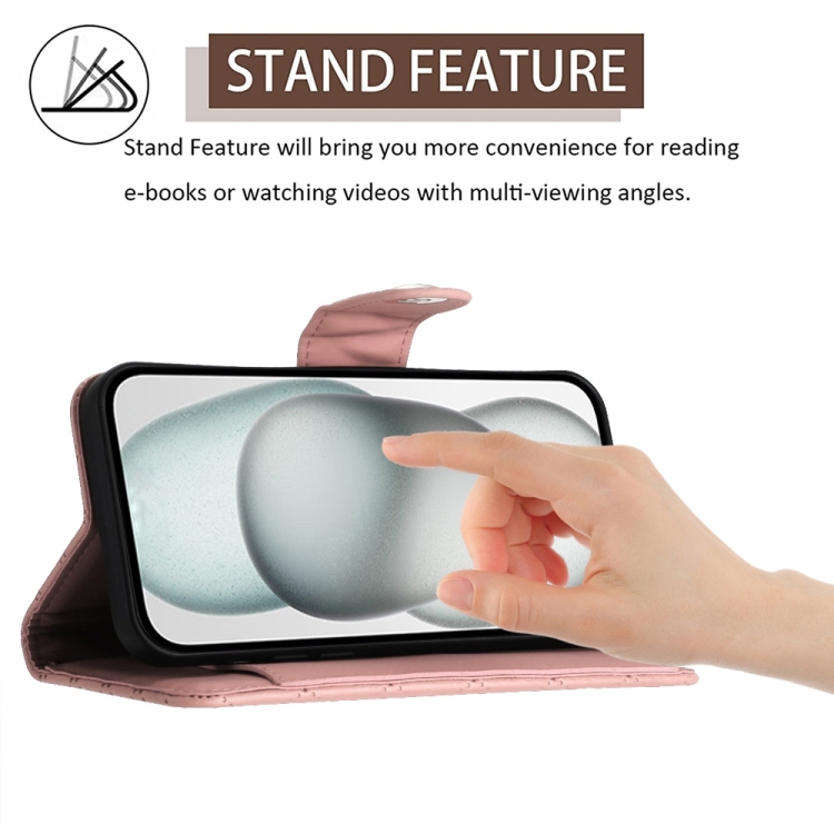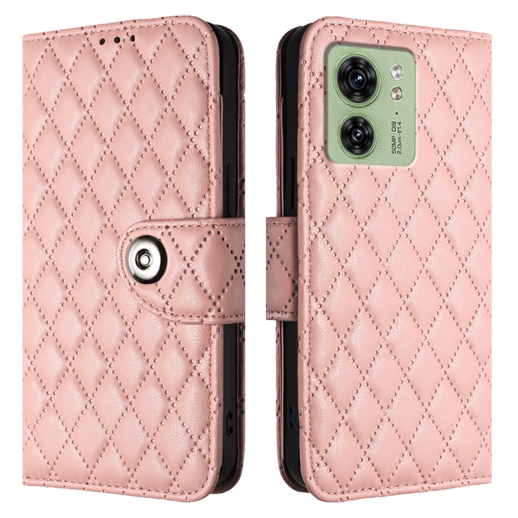 Funda de Cuero con Tapa y Textura Rómbica para Motorola Edge 2023 con Cordón (Rosa Coral)