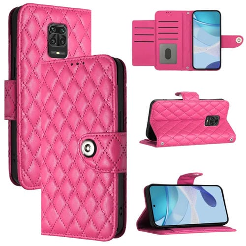 Funda de Cuero con Tapa y Textura Rómbica para Redmi Note 9 Pro/Note 9 Pro Max con Cordón (Rosa Rojo)