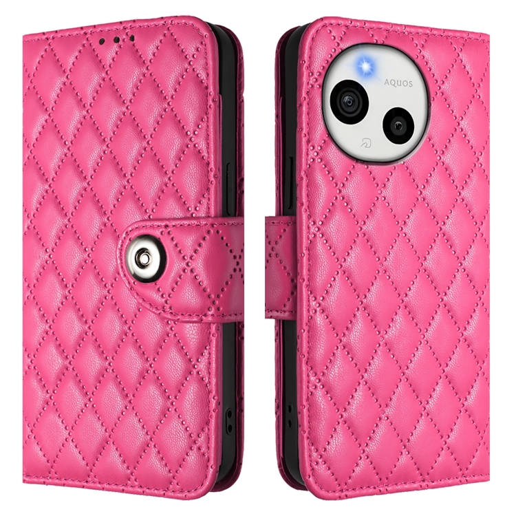 Funda de Cuero con Tapa y Textura Rómbica para Sharp Aquos Sense9 Plus con Cordón (Rosa y Rojo)