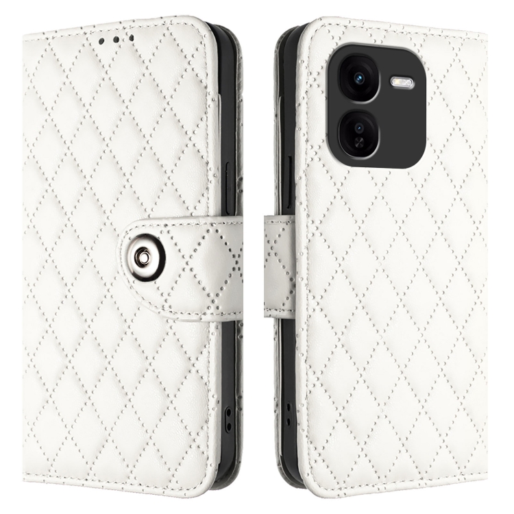 Funda de Cuero con Tapa y Textura Rómbica para Teléfono Vivo Iqoo Z9X con Cordón (Blanco)