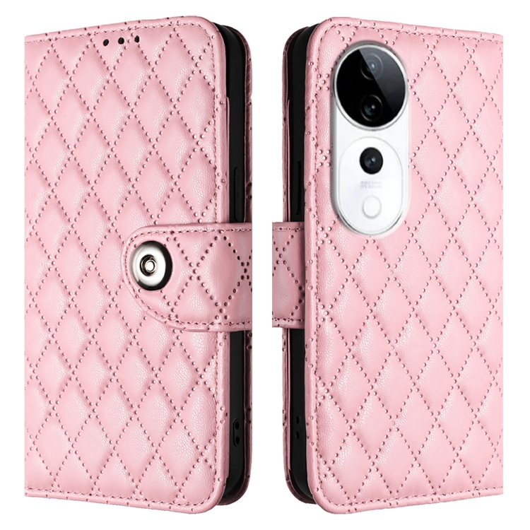 Funda de Cuero con Tapa y Textura Rómbica para Teléfono Vivo S19 Pro con Cordón (Rosa)