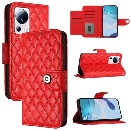 Funda de Cuero con Tapa y Textura Rómbica para Xiaomi 13 Lite/Civi 2 con Cordón (Rojo)