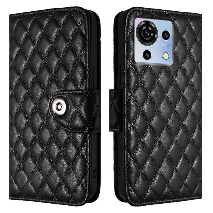 Funda de Cuero para ZTE Blade V50 Vita con Tapa y Textura Rómbica con Cordón (Negro)