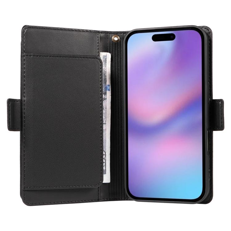 Funda de cuero con tarjetero para iPhone 17 con correa (negra)