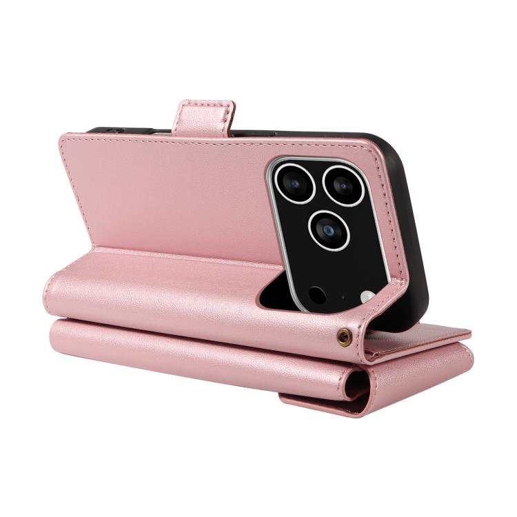 Funda de cuero con tarjetero para iPhone 17 Pro con correa (oro rosa)