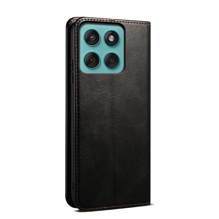 Funda de cuero con textura Crazy Horse para Motorola Moto G86 Power Oil Wax (negro)