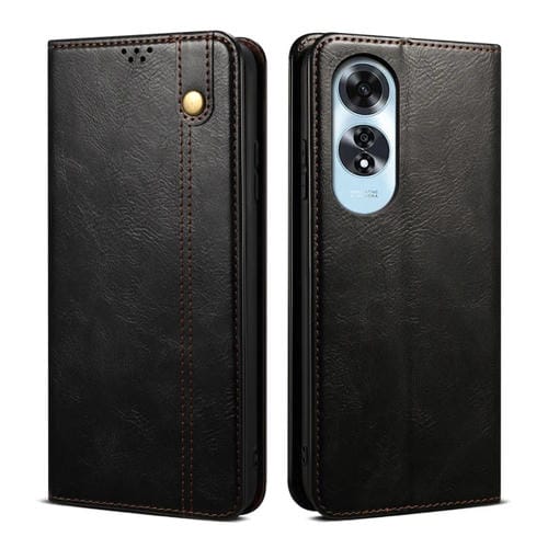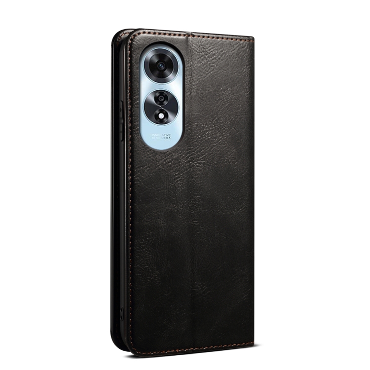 Funda de Cuero con Textura Crazy Horse para Oppo A60 (Negro)