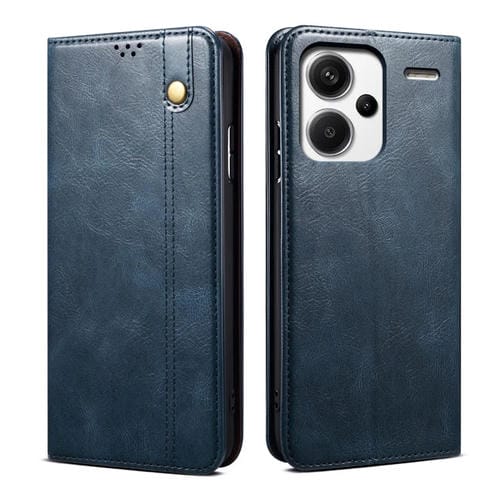 Funda de Cuero con Textura Crazy Horse y Cera de Aceite para Redmi Note 13 Pro+ (Azul)