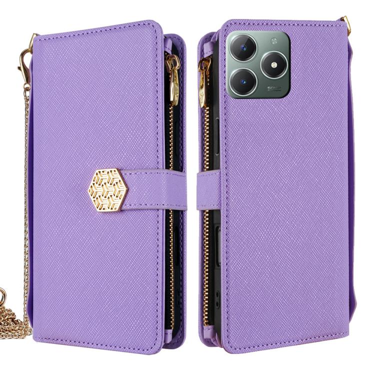 Funda de Cuero con Textura Cruzada y Asa Cruzada para Realme C61 4G (Morado)
