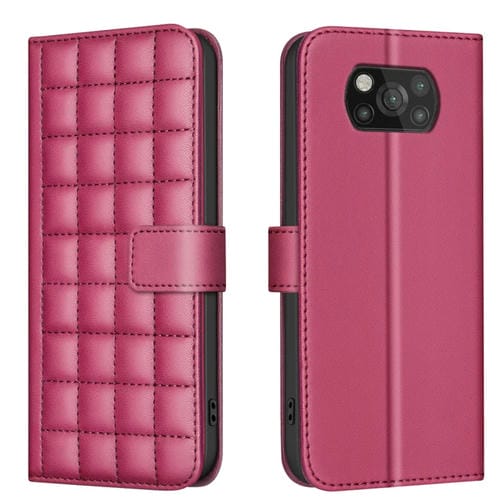 Funda de Cuero con Textura Cuadrada para Teléfono Xiaomi Poco X3/X3 Nfc (Rojo)