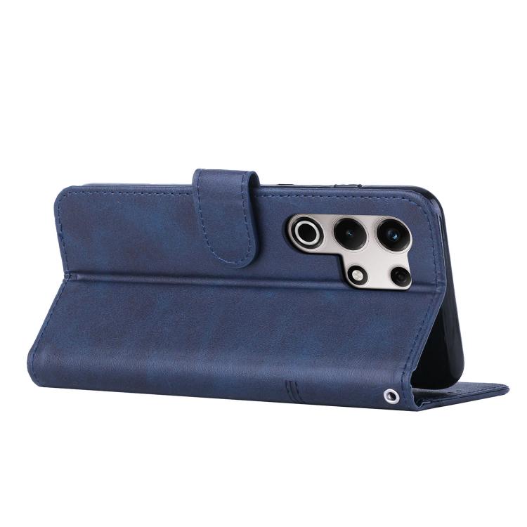 Funda de Cuero con Textura de Becerro y Hebilla para Teléfono Itel S25 Ultra (Azul)