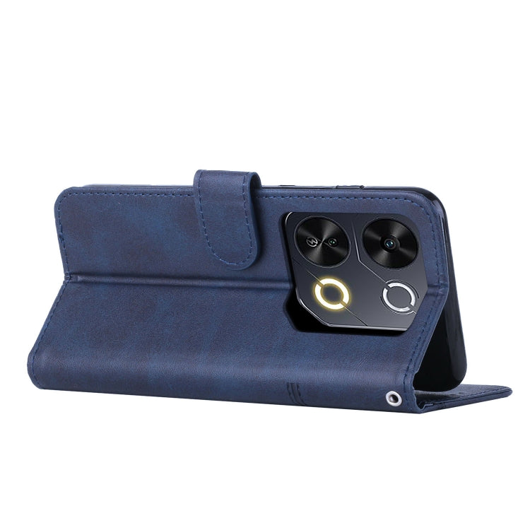 Funda de Cuero Textura Becerro con Costuras para Teléfono Itel P65 (Azul)