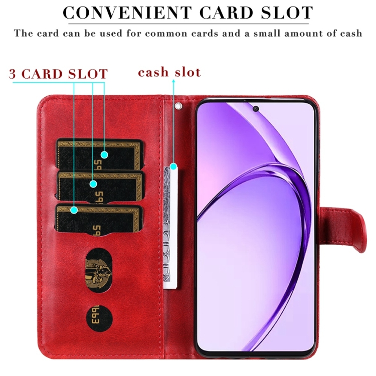 Funda de Cuero con Textura de Becerro y Cremallera para Oppo A3 Pro 5G Global/India (Rojo)