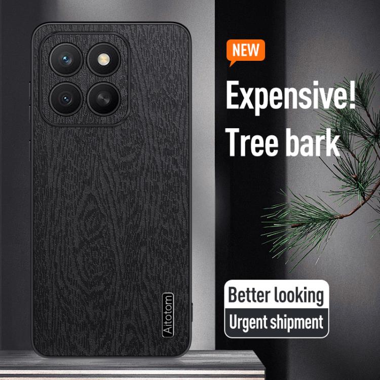 Funda de Cuero para Honor X8C con Textura de Corteza y Protección a Prueba de Golpes (Negra)