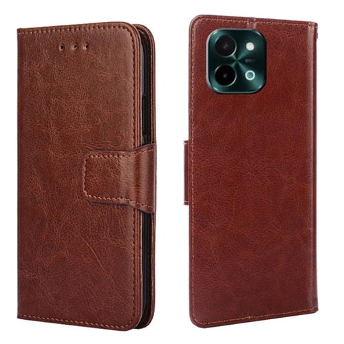 Funda de Cuero con Textura de Cristal para Teléfono Vivo Y28 4G (Marrón)
