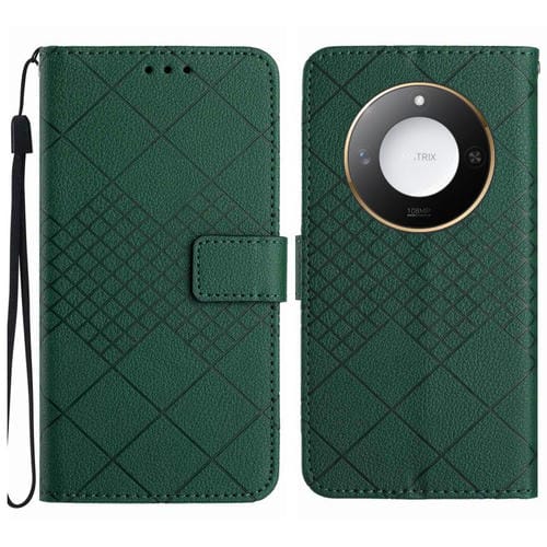 Funda de Cuero Textura Cuadrícula Rómbica para Honor X9C (Verde)