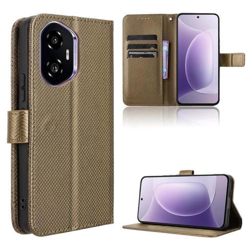 Funda de Cuero con Textura de Diamante para Honor 300 5G (Marrón)