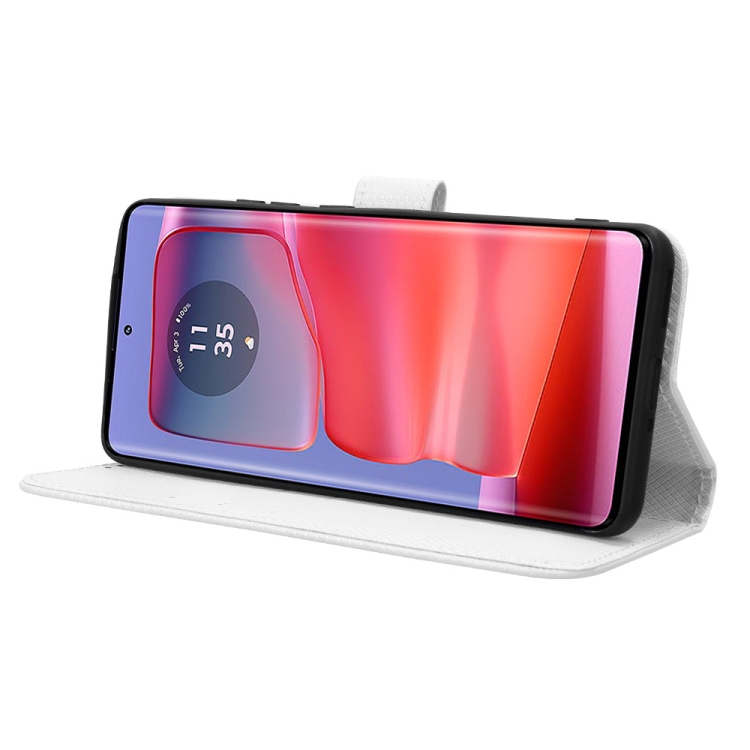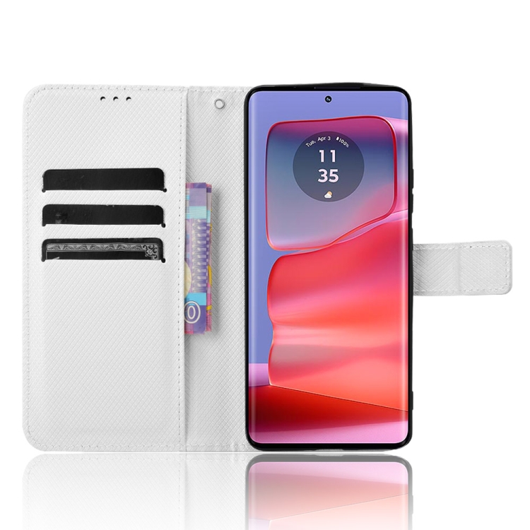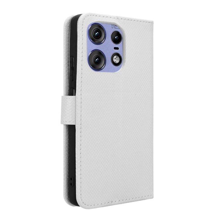 Funda de Cuero con Textura de Diamante para Motorola Edge 50 Pro (Blanca)
