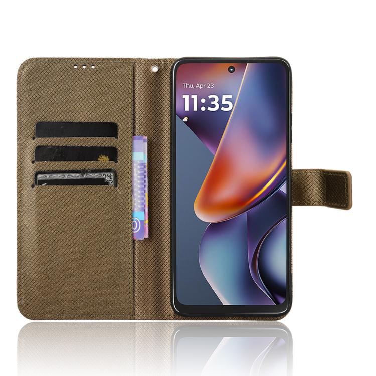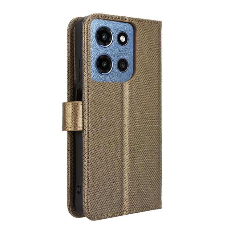 Funda de Cuero con Textura de Diamante para Motorola Moto G 5G (2025) (Marrón)