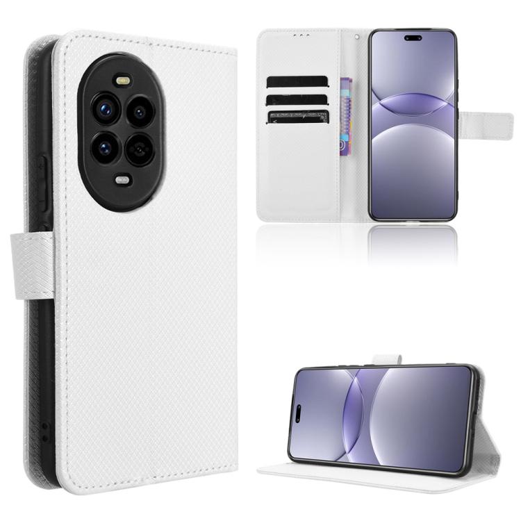 Funda de Cuero con Textura de Diamante para Huawei Nova 13 Pro 5G (Blanca)