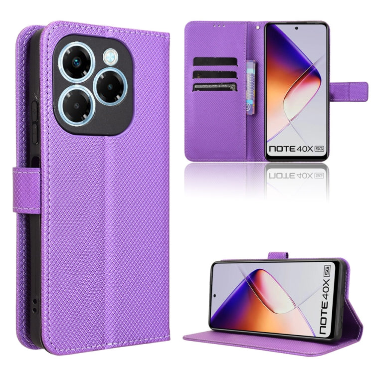 Funda de Cuero con Textura de Diamante para Infinix Note 40X 5G (Morado)