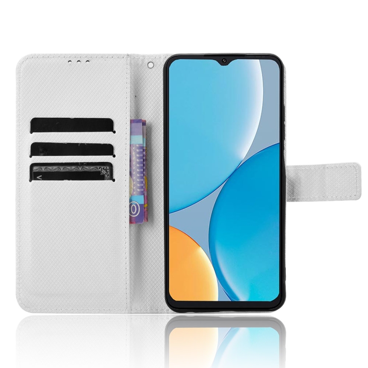 Funda de Cuero Itel A50C con Textura de Diamante para Teléfono (Blanca)