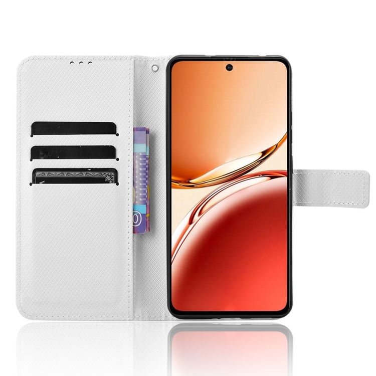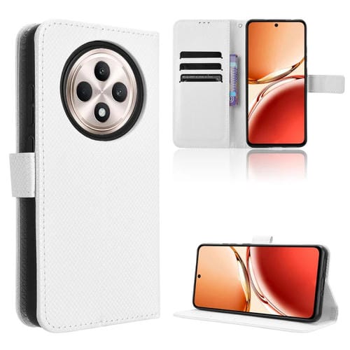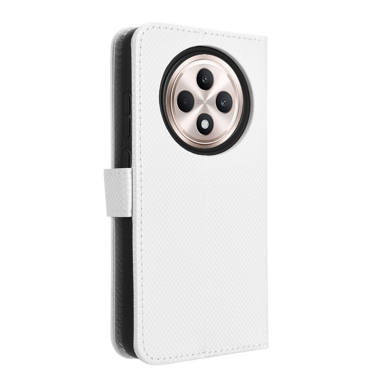 Funda de Cuero con Textura de Diamante para Oppo Reno12 F 5G (Blanca)