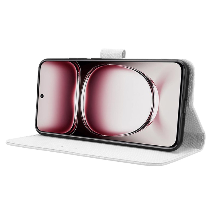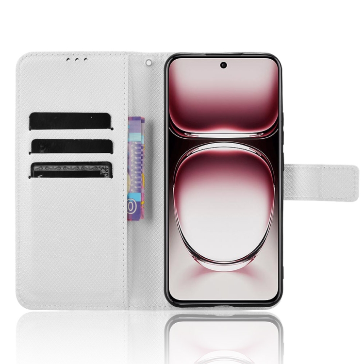 Funda de Cuero con Textura de Diamante Global para Oppo Reno12 Pro 5G (Blanca)