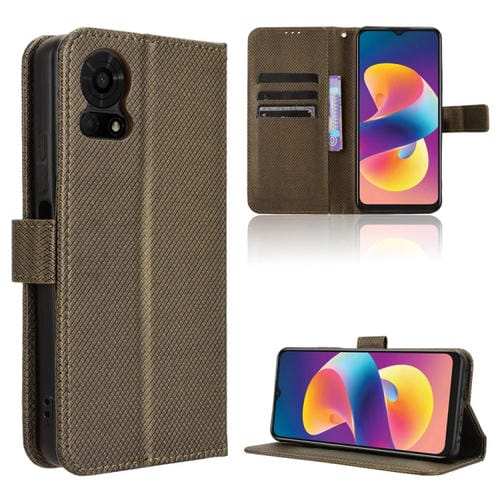 Funda de Cuero Textura de Diamante para TCL 50 Le (Marrón)