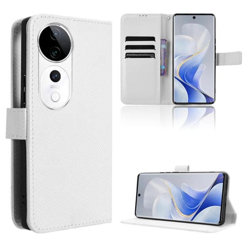 Funda de Cuero con Textura de Diamante para Vivo S19 Pro 5G / V40 5G (Blanca)