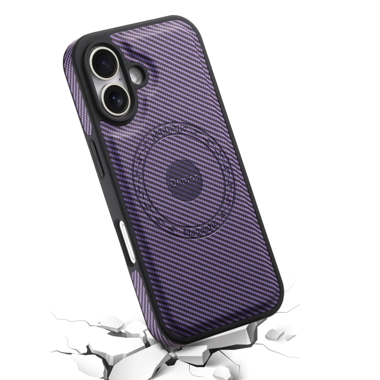 Funda Cuero Denior Magsafe para iPhone 16 Textura Fibra de Carbono (Morado)