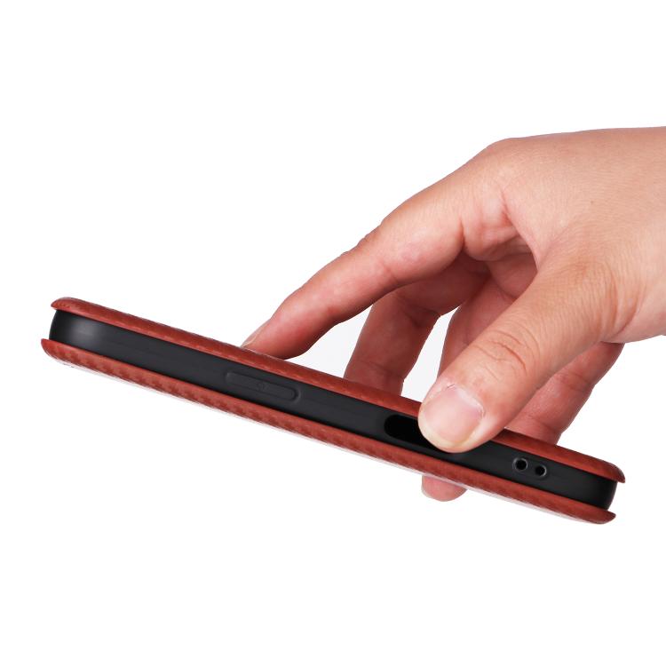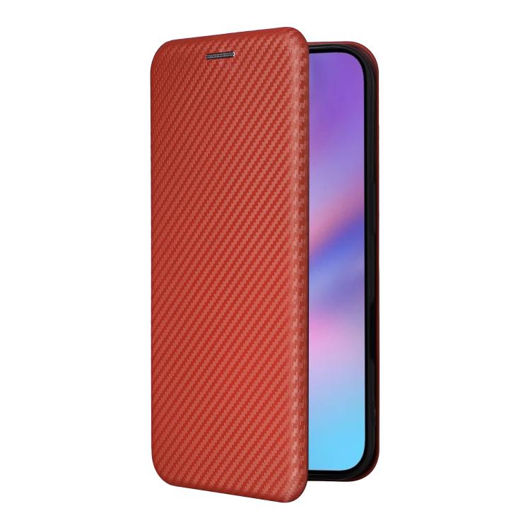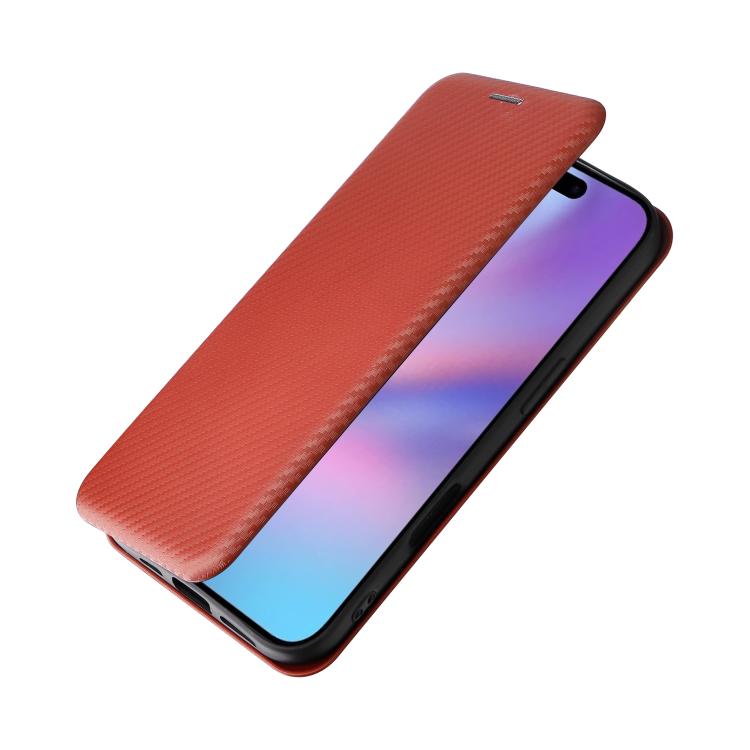 Funda de cuero con textura de fibra de carbono para iPhone 17 (marrón)