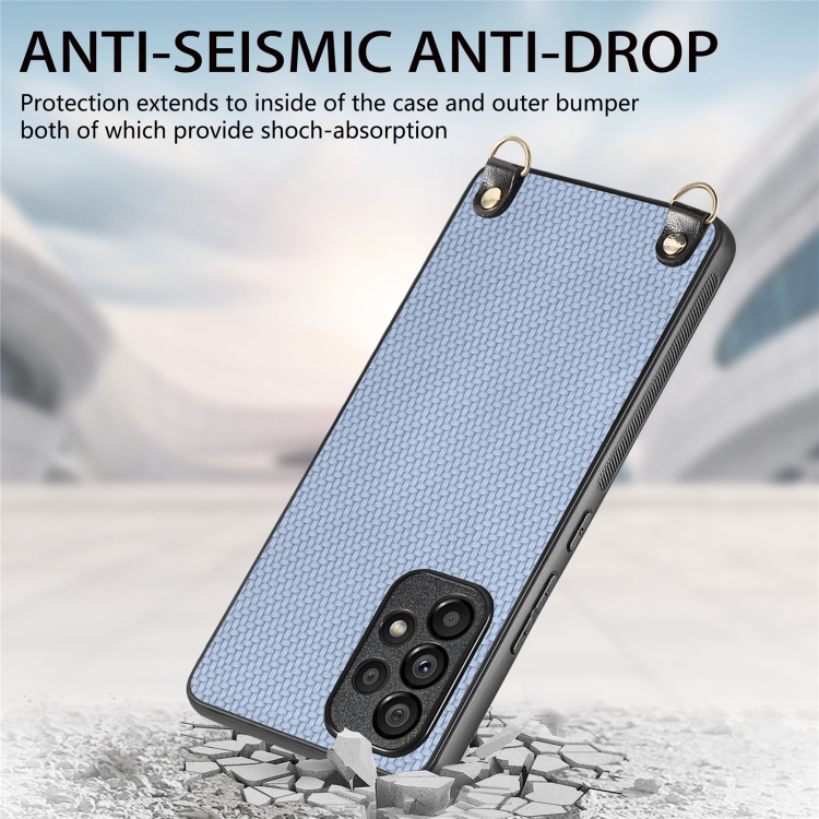 Funda Cuero Fibra de Carbono Samsung Galaxy A53 con Correa Cruzada (Azul)