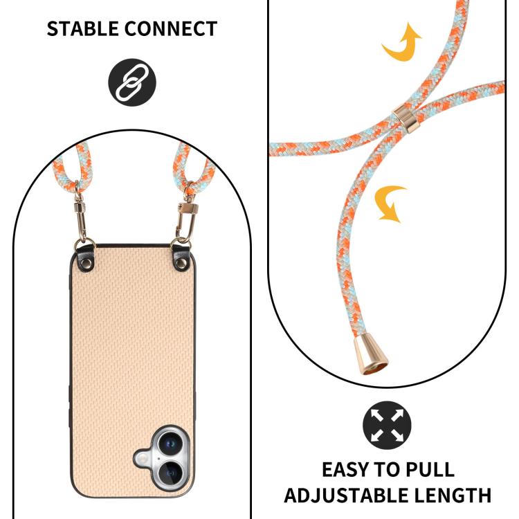 Funda de cuero con textura de fibra de carbono y correa cruzada para iPhone 17 (caqui)