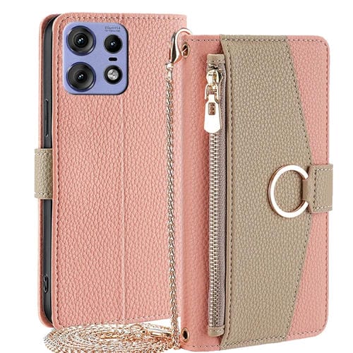 Funda de Cuero con Textura de Lichi para Motorola Edge 50 Pro 5G (Rosa)