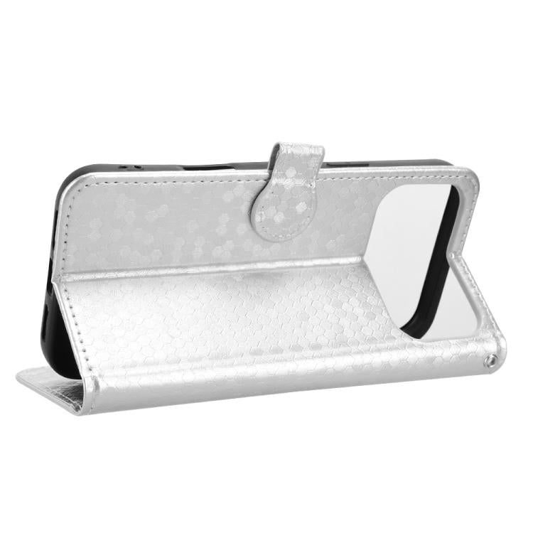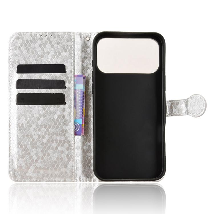 Funda de cuero con textura de lunares y panal para iPhone 17 Pro Max (plateada)
